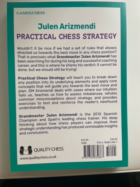 Practical Chess Strategy will teach you to break down any position into its underlying elements and apply core concepts that will guide you towards the best move and plan. GM Arizmendi deals with cases where our intuition fails us, teaches us how to assess imbalances, refutes common misconceptions about strategy, and provides exercises to test and reinforce the readers newfound understanding.